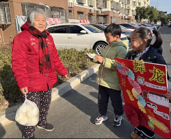 伴随着孩子们寻访的脚步,他们在“祥龙巡游”活动中,大2班孩子们提前设计舞龙动作、规划路线,走访社区与服务站,在真实的交往中发展社会性与归属感;