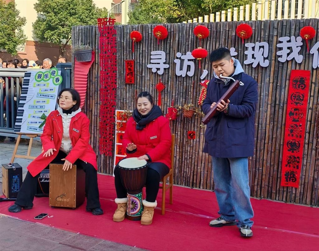 在“鼓乐迎春”活动中,师生们共同欣赏、演奏中外不同乐器演奏的新春曲目,感受新春热闹、喜庆的氛围;